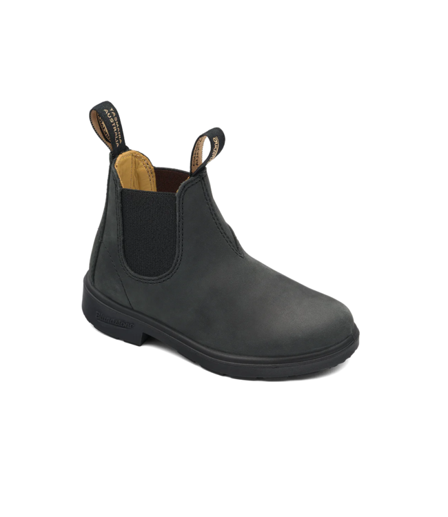 The Blundstone Kids in Rustic Black offers rugged style and easy function for active little feet. Crafted from premium weather-resistant leather with breathable elastics, these Chelsea boots feature durable pull tabs, a tough polyurethane sole, and removable, washable foot-beds that can be replaced as the child grows—making them wardrobe staples for seasons to come.