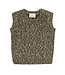 A cozy brown knit sweater vest with button detail at the shoulder.