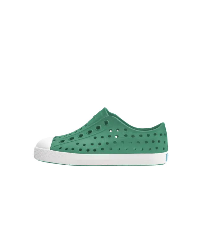 The Jefferson Child in Alpine Green is Native’s iconic slip-on reimagined with Sugarlite™ – a unique, sugarcane-based EVA that’s lighter on the planet and just as playful for kids. Lightweight, shock-absorbent, and water-friendly, it’s built for everyday adventures. The perforated upper keeps feet cool, while the odour-resistant, hand-washable design makes it parent-approved.