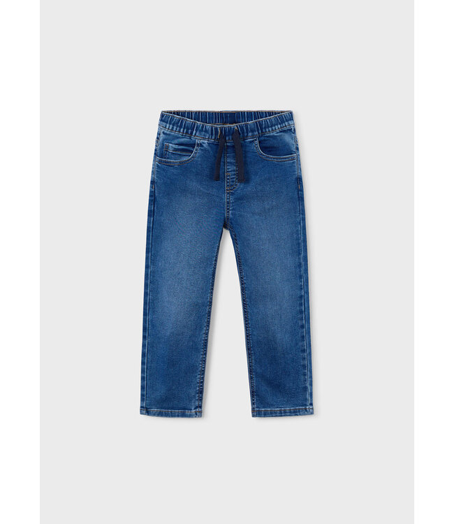 These soft denim joggers are designed for easy everyday wear, featuring a flexible elastic waistband with adjustable drawstring and a relaxed, comfortable fit. The medium wash gives them a classic look, while the soft feel makes them perfect for active days.