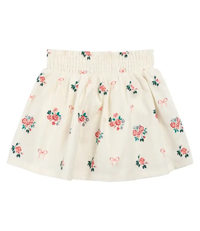This woven skort features a soft floral print on a light base, combining the look of a skirt with the comfort of built-in shorts. The elastic waistband ensures an easy fit, while the lightweight fabric makes it perfect for warmer days.