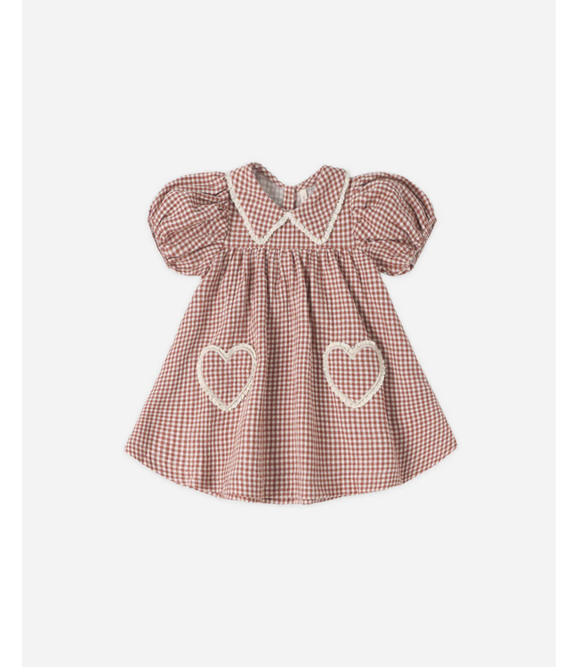 The Quincy Mae Coraline Dress blends timeless charm with everyday comfort. Crafted from soft breathable fabric, this vintage-inspired silhouette features delicate puff sleeves, a classic collar, and adorable heart pocket details that add playful character. The easy pull-on fit allows for comfortable movement while the full skirt creates a beautifully classic shape, making it perfect for everyday wear, celebrations, or special seasonal moments.