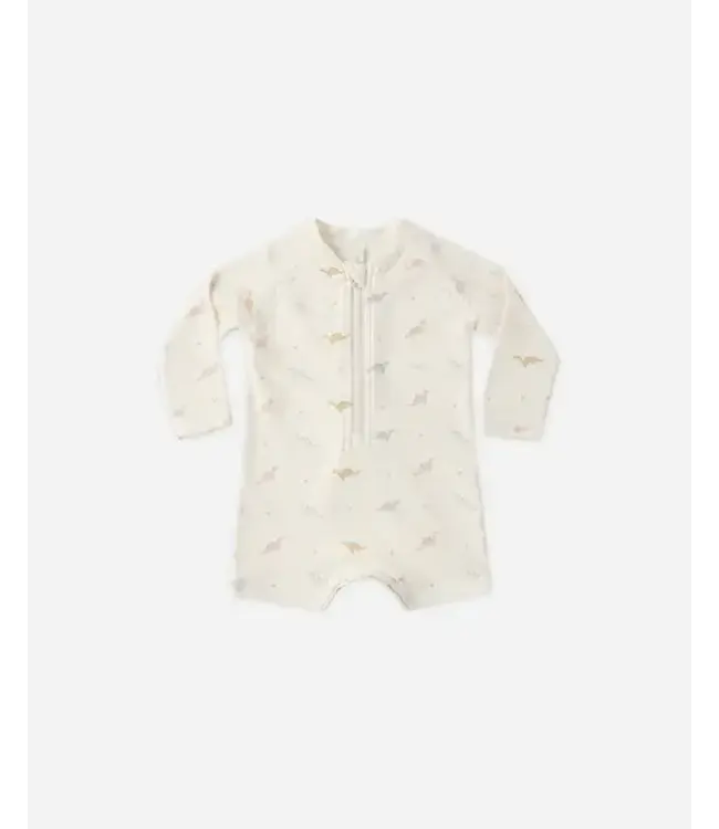 The Quincy Mae Long Sleeve One-Piece Rashguard is designed to keep little ones comfortable and protected during water play. Made from soft, stretchy fabric, it allows for easy movement whether at the beach, pool, or playing in the sun.