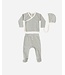 A three-piece newborn set with classic forest stripes — made for baby’s first days and cozy nights.