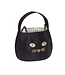 his Black Cat Bucket Bag from Rockahula is crafted in soft shimmering black glitter and features embroidered emerald eyes, gold whiskers, and glittery ears for a fun feline flair. It is fully lined with green striped fabric and has a sturdy fabric handle for easy carrying. The bucket shape provides plenty of room for treats, toys, or everyday treasures. Dimensions are approximately 24 cm × 12.5 cm (at the widest point), with a strap drop length of 10 cm. The bag is made using recycled glitter.